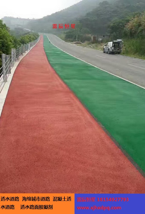 3、振搗:在澆注過程中不宜強烈振搗或夯實。一般用平板振動器 輕振鋪平后的透水性混凝土 混合料,但須注意不能使用高頻振搗器,否則他會使混凝土過于密實面減少孔隙率,并影響透水效果。同時高頻振搗器也會使水泥漿體從粗骨料表面離析出來,流入底部形成一個不透水層 ,使材料失去透水性。